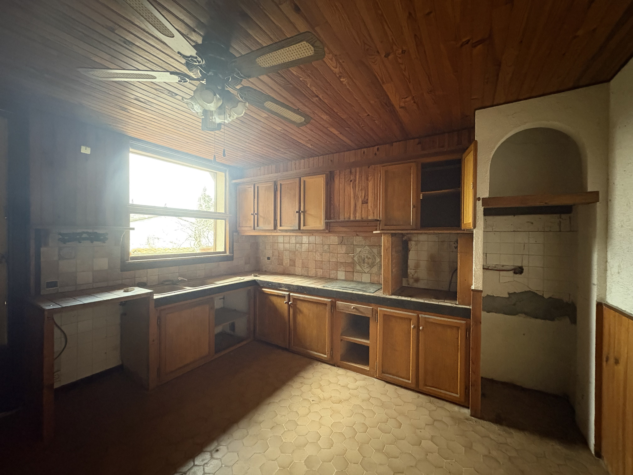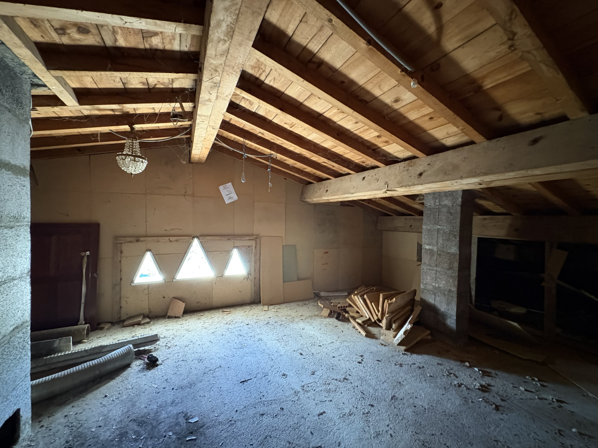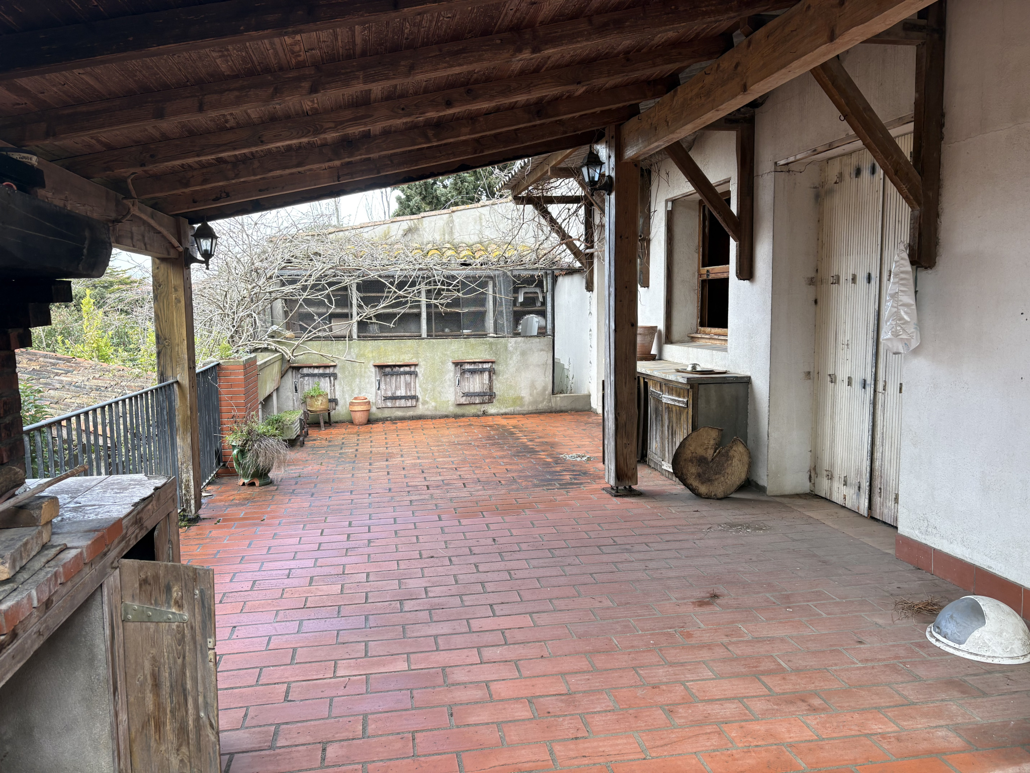 MAISON A RENOVER COMPRENANT : AU 1ER ETAGE : UNE ENTREE, UN SALON/SEJOUR , UNE CUISINE OUVERTE, 3 CHAMBRES, UNE SALLE D'EAU,, UN WC; TERRASSE DE 60 M2 AVEC BARBECUE; AU 2EME ETAGE : UN GRENIER UN GRAND GARAGE DE 136 M2 ET UN ATELIER, BUANDERIE ET CHAUFFERIE TRAVAUX A PREVOIR : ELECTRICITE, DOUBLE VITRAGE, CHAUFFAGE, PEINTURE.......