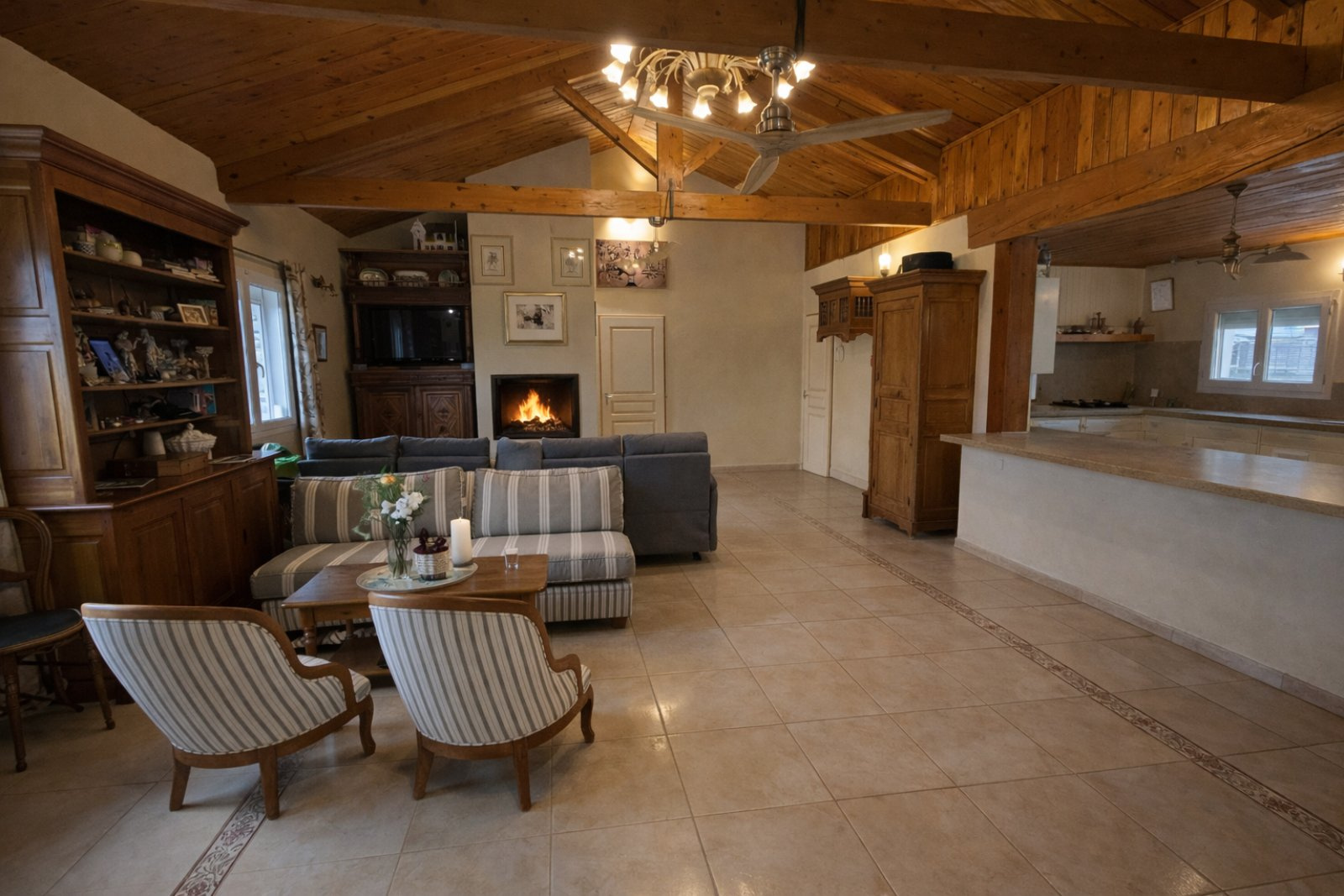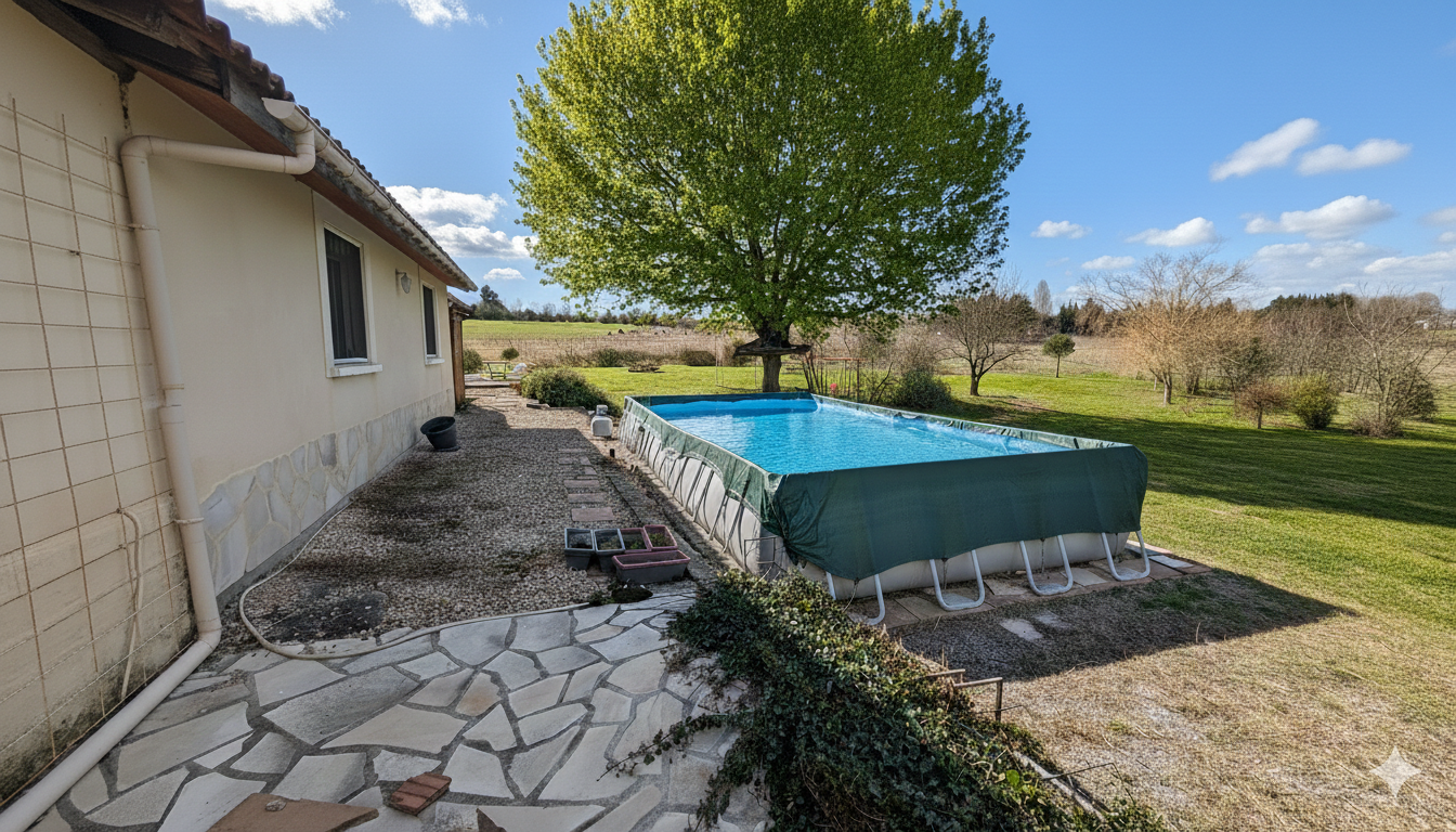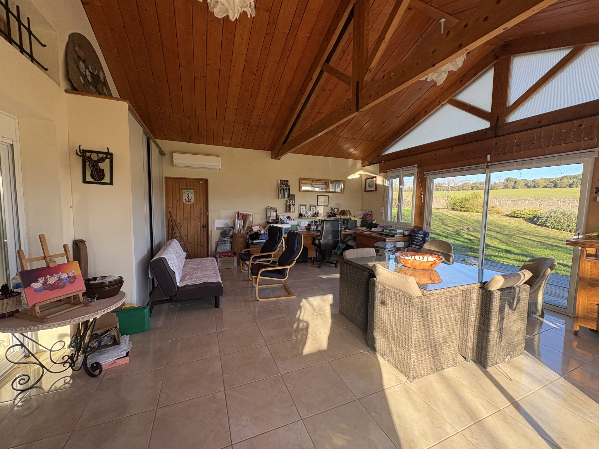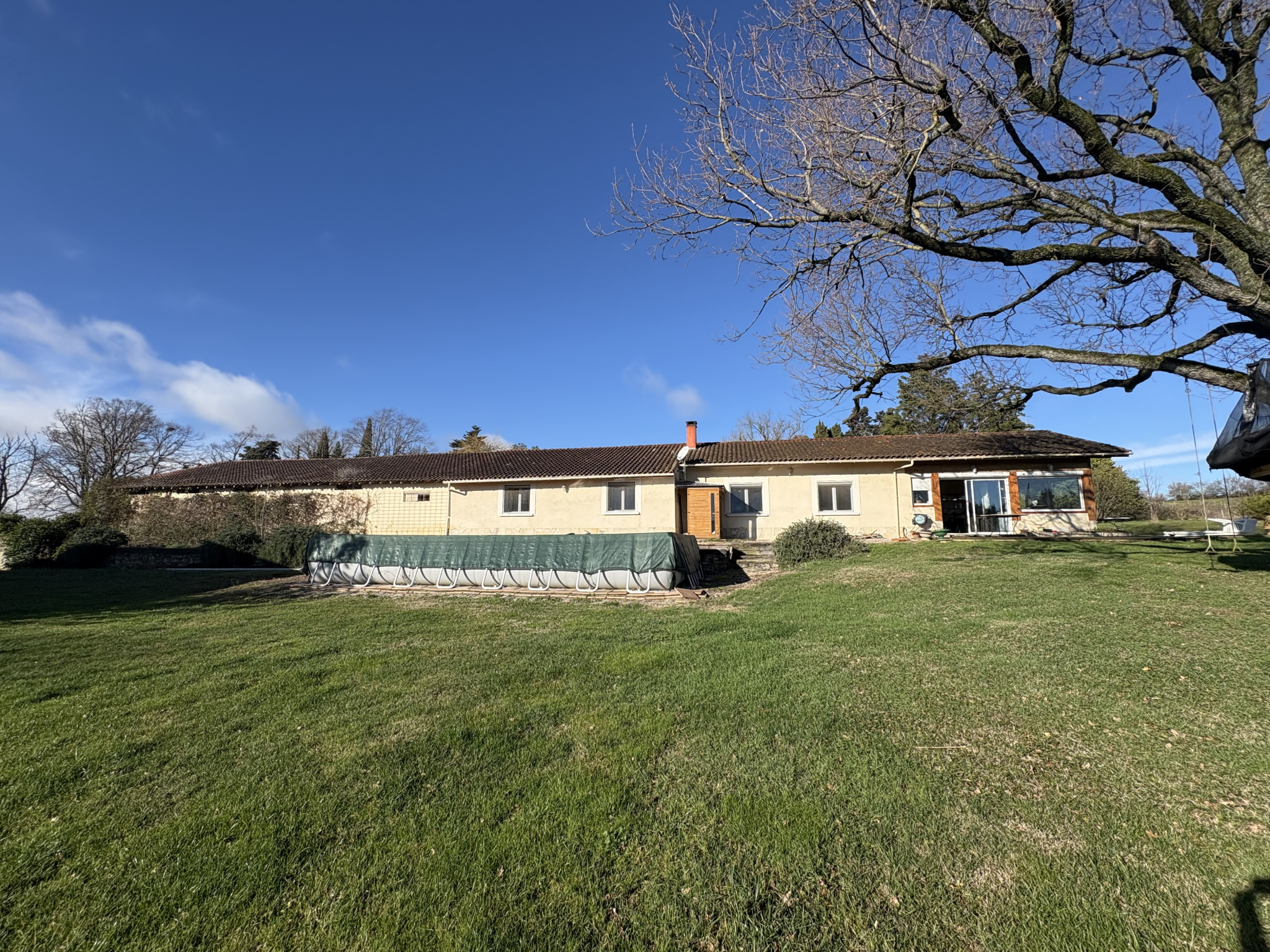 MAISON DE PLAIN-PIED EN EXCELLENT ETAT D'UNE SURFACE DE 200 M2 HABITABLE COMPRENANT : UNE ENTREE, UN SALON/SEJOUR AVEC INSERT DE 50 M2, UNE CUISINE OUVERTE EQUIPEE , 3 CHAMBRES SPATIEUSES AVEC PLACARDS, UNE SALLE D'EAU, UN WC, UNE BUANDERIE, UNE VERANDA DE 42 M2 AVEC CLIMATISATION CHAUFFAGE AU SOL AVEC POMPE A CHALEUR, PANNEAUX SOLAIRE 9 KW UN HANGAR ATTENANT POUR STOKAGE DE 195 M2 UN HANGAR OUVERT POUR LES VOITURES PISCINE HORS SOL